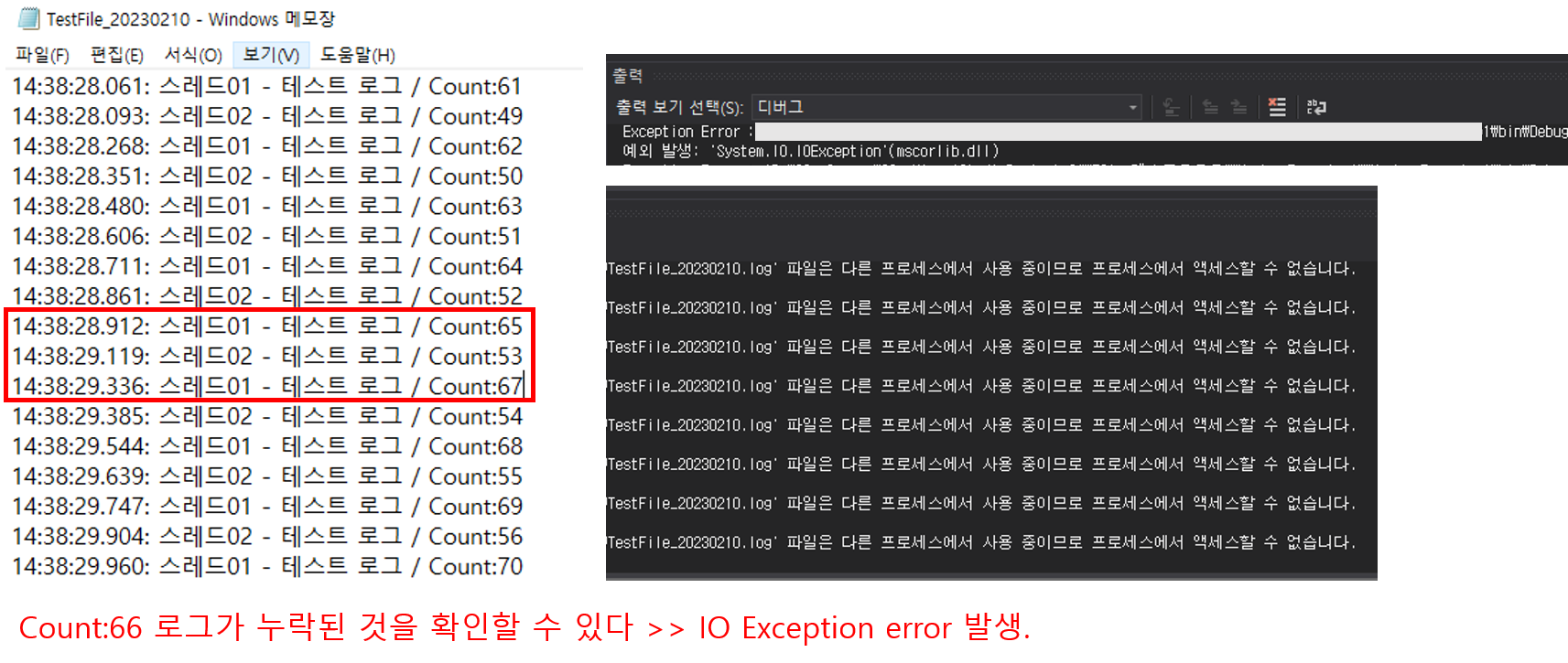 (Error >> TestFile_20230210.log' 파일은 다른 프로세스에서 사용 중이므로 프로세스에서 액세스할 수 없습니다.)
