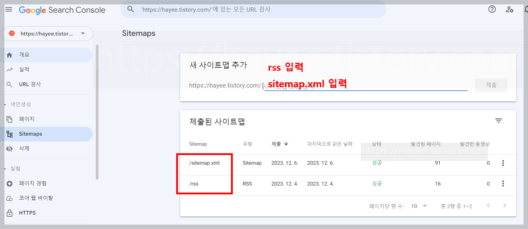 → sitemap 하나만 등록이 되어있었기 때문에 rss 를 추가로 등록하였다.