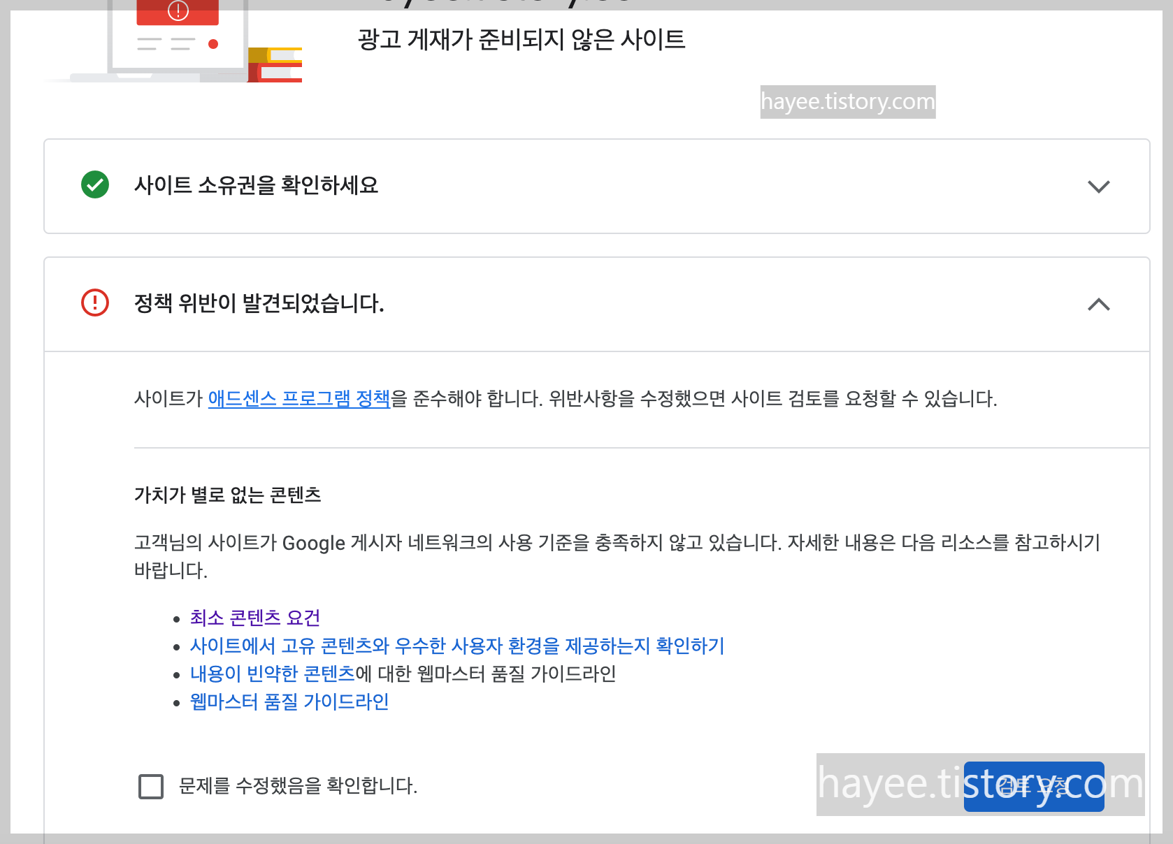 이제 4번째 시도가 될것 같은데... 또 반려를 당한 나의 티스토리