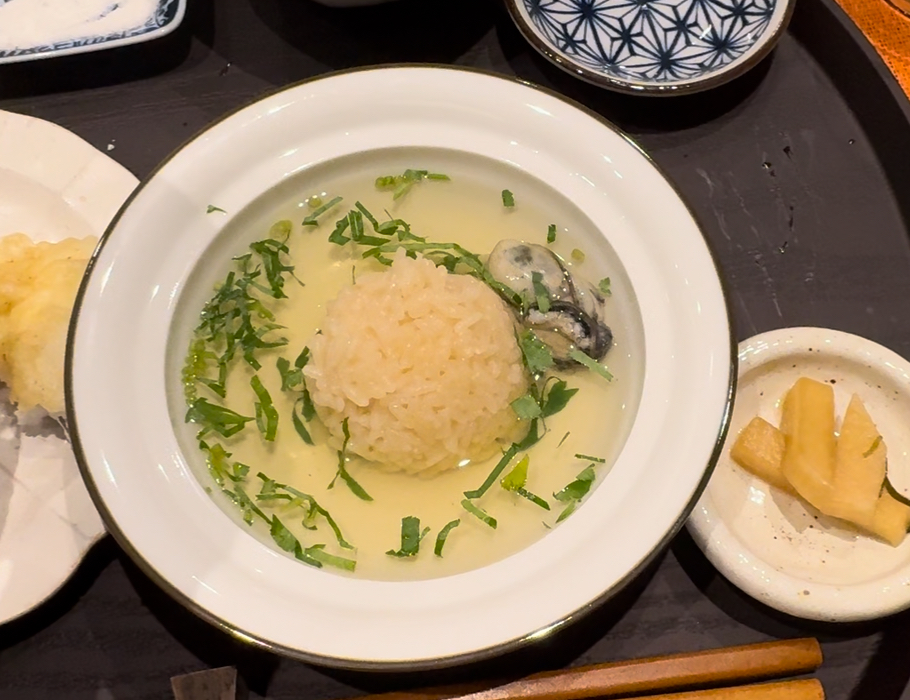 굴 국밥 같은 이 비쥬얼. 처음엔 뭔가 했는데 의외로 맛있었다. 굴 향이 엄청 쎄진 않았는데 국물이 대박이다..